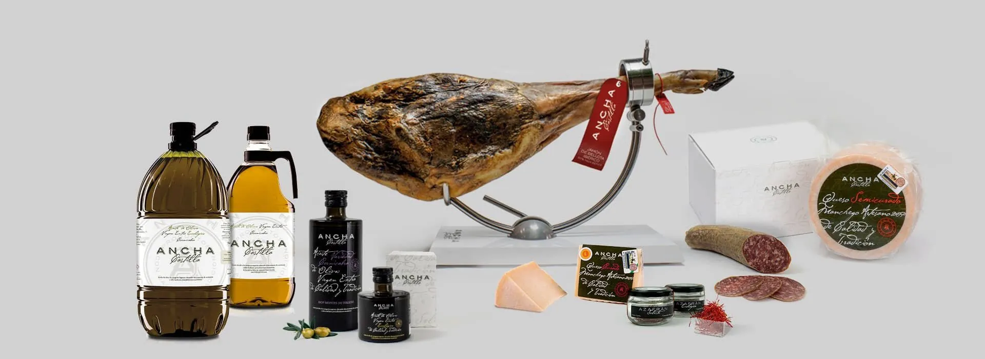 Adéntrate en la familia de ANCHA Castilla, y descubre nuestras mejores variedades de aceite de oliva virgen extra y el jamón ibérico de la mejor calidad, entre otros.