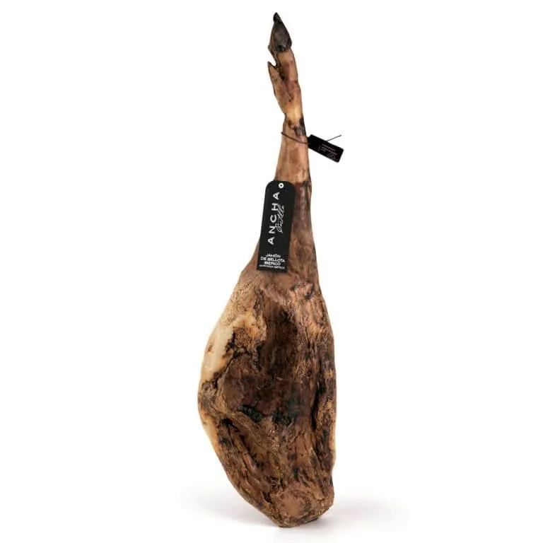 Jamón Ibérico de Bellota procedente de cerdos 50% raza Ibérica. El tiempo de curación mínimo es de 730 días por pieza. Posibilidad de elegir la pieza y enviarla completamente loncheada.